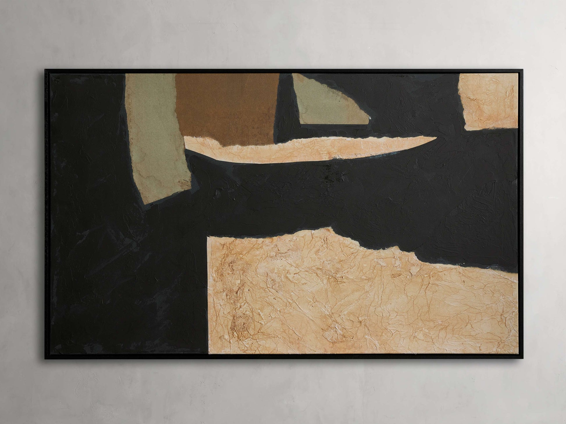 - Features a black wood frame.