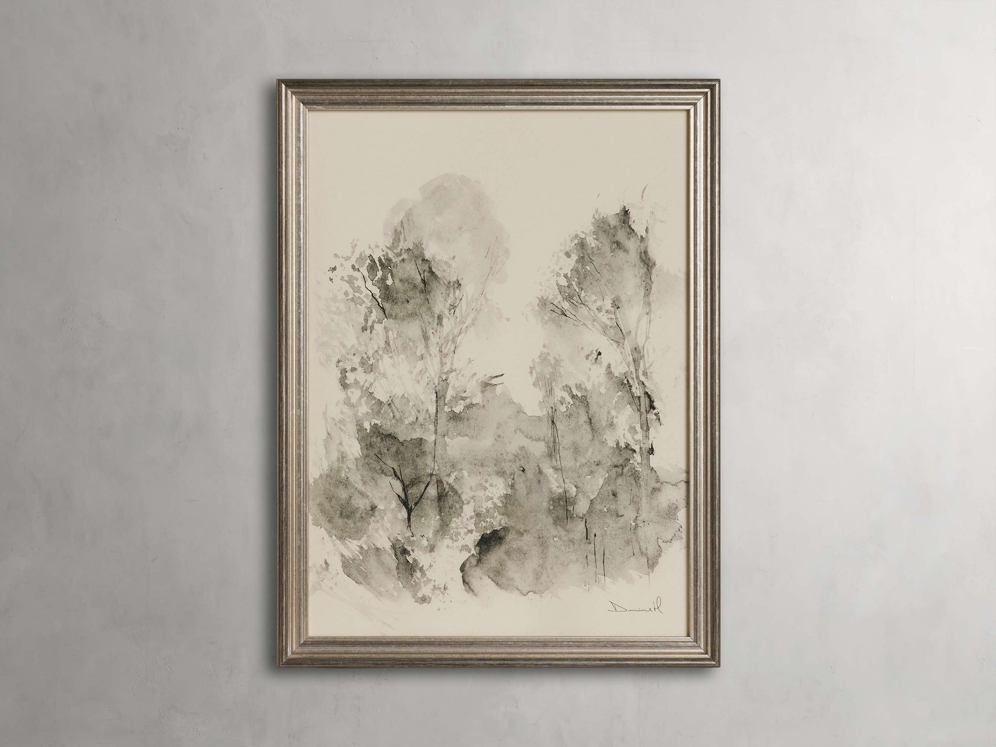 - Layers of transparent color create this striking nature scene, while the wood frame decorated with silver leaf adds a touch of glamour and charm.